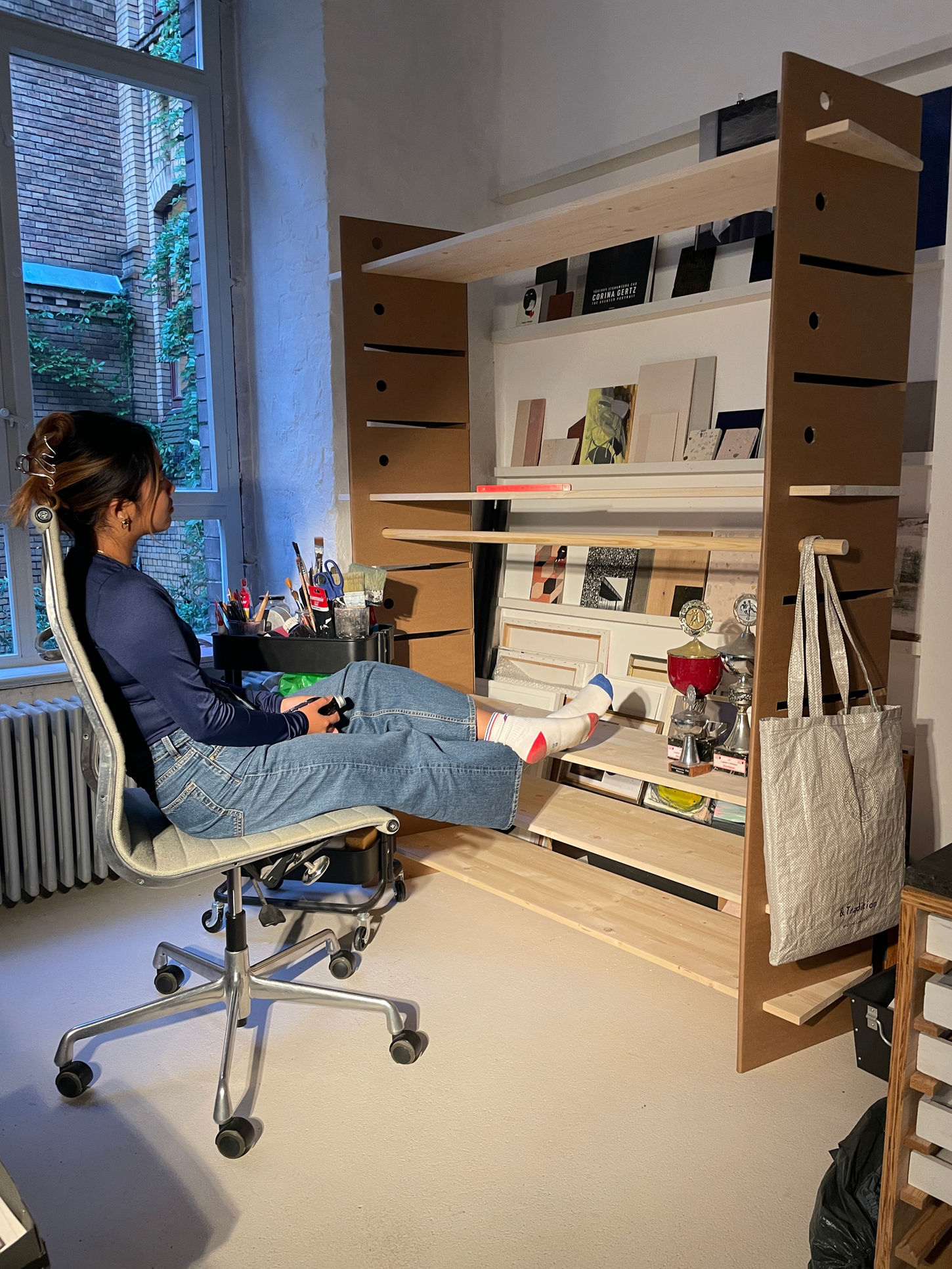 Der Klassiker unter den nachhaltigen Möbelsystemen, vielseitig und umwerfend praktisch. Bekommen kann man es in Eiche naturgeölt und Esche weiß geölt, selbstverständlich nur in Vollholz. Wir arbeiten mit Werkstätten für behinderte Menschen zusammen und diversen Kooperativen, um auch in der Herstellung so sozialverträglich wie nur irgendwie möglich zu sein.